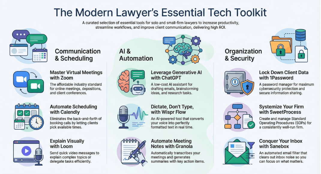 Here’s the list that I shared with my online lawyer community of tech that consistently moves the needle—for communication, automation, and sanity.